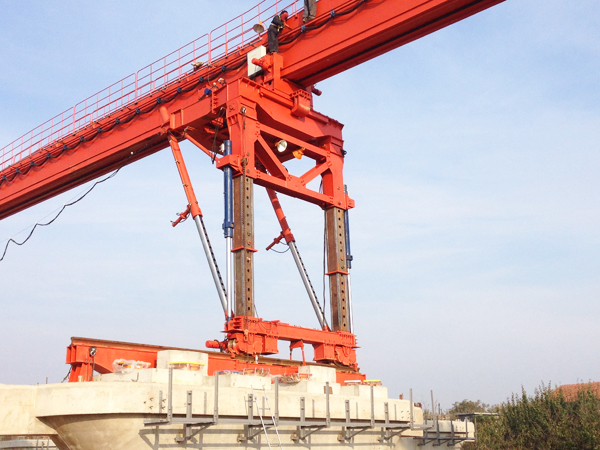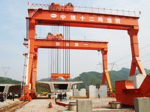 以及生產更新運架產品能架設跨度40M高速鐵路箱梁的:SXJ1000T/40M一跨式架橋機(配套攀爬式運梁車可以實現(xiàn)過隧道零距離架梁)和攀爬式運梁車。并能對現(xiàn)有32M分體式運架設備進行改造,改造后能實現(xiàn)高低位架設跨度40M高速鐵路箱梁(高位改造不能過隧道,把原架橋機改造一跨式,把原運梁車增加2軸。低位改造能過隧道架梁,把原架橋機改造一跨式低位,把原運梁車改成攀爬式運梁車并增加二臺喂梁臺車實現(xiàn)過隧道架梁)。